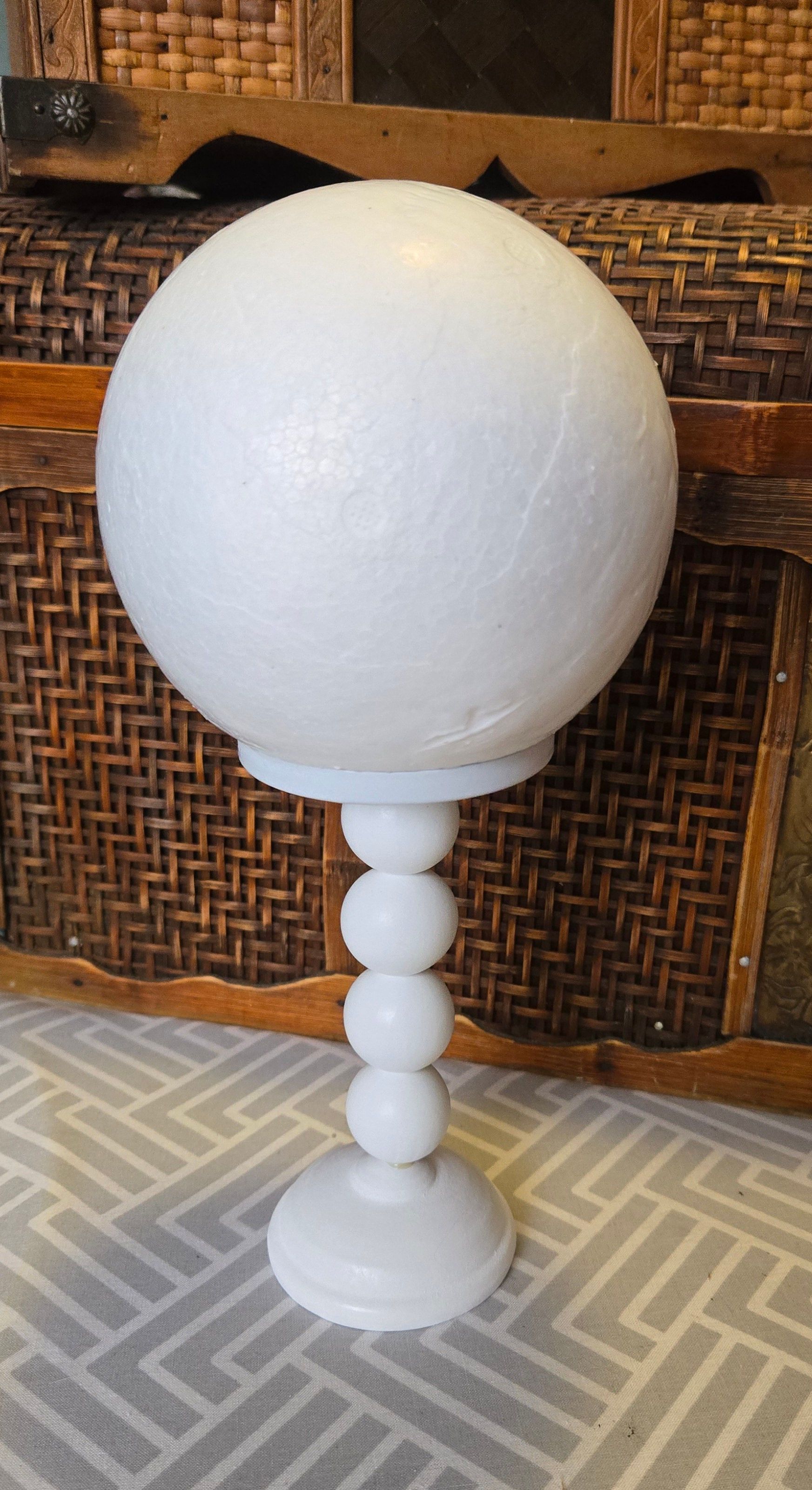Knowing how fragile styrofoam can be, the accessorist painted three layers of white glue on the ball. Some tissue paper will also be glued for strength if time allows.