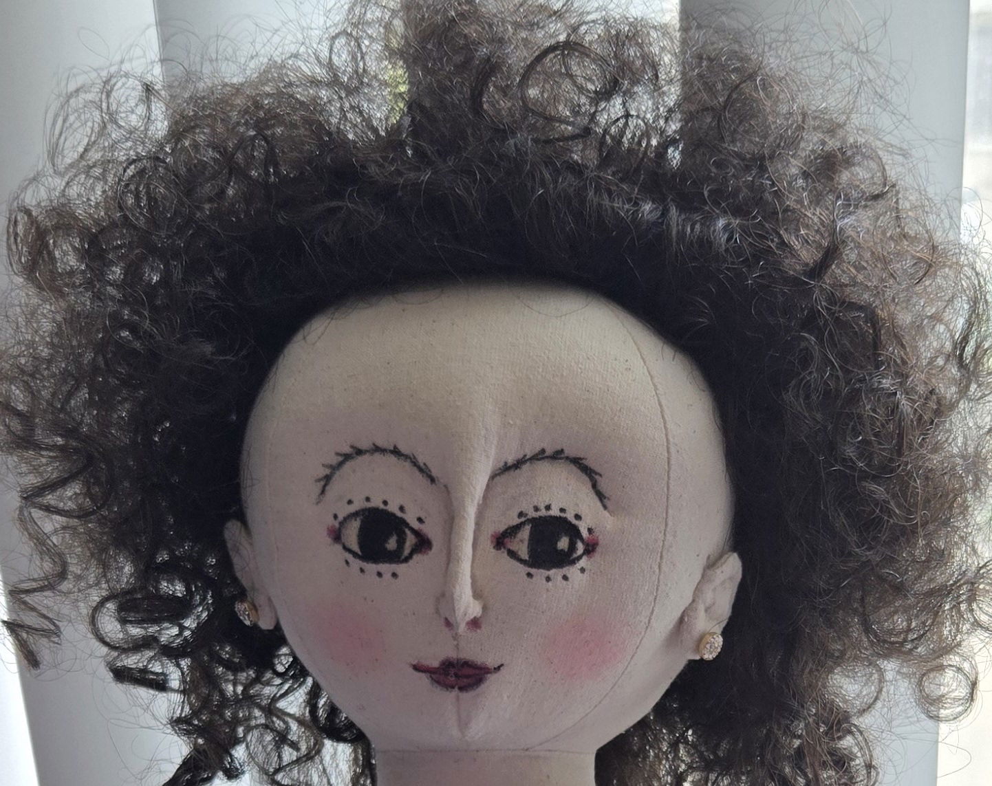 It has been mentioned several times now that Adelaide has a big head, commensurate with her size. Addy's 1780's style wig needs some sort of storage to prevent it looking even messier than its period style dictates.